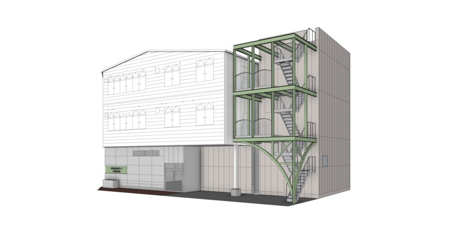 外観は既存棟との調和を図りながら、新たなボリュームが街並みに寄与し、開かれた印象を与えるデザインとするため、かつての工業地帯や下町の趣が感じられる、鉄骨によるフレームと奥行きのあるテラスで構成する。地域に親しまれ、安心して訪れることのできる動物病院の姿を、建築のかたちで示している。