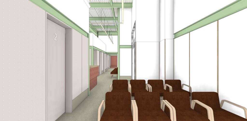 既存棟の改修では、受付から診察・検査・会計に至る動線を再構築し、利用者にとってのスムーズな流れと、スタッフにとっての効率的な作業環境を両立する。また、断熱改修や設備を刷新し、院内を常に快適な環境に整える。